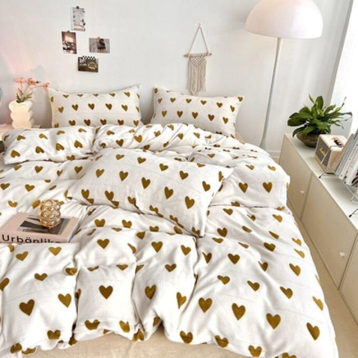 - CHARMING DESIGN: Features a delightful white base with gold heart pattern that adds a romantic and stylish touch to any bedroom décor