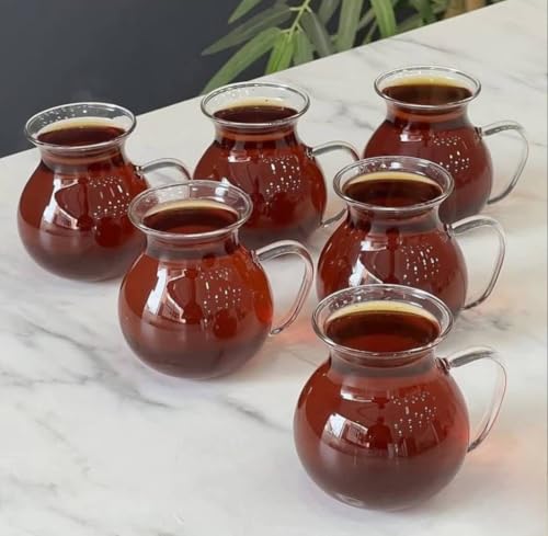 - COMPLETE 6-PIECE SET: Includes six matching glass cups with handles, ideal for serving tea to family and guests or enjoying your favourite hot beverages throughout the day
