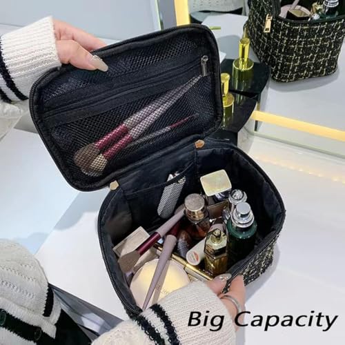 Generic - Generic Large Capacity Woven Wool Fabric Travel Makeup Bag for Women, Black .flo