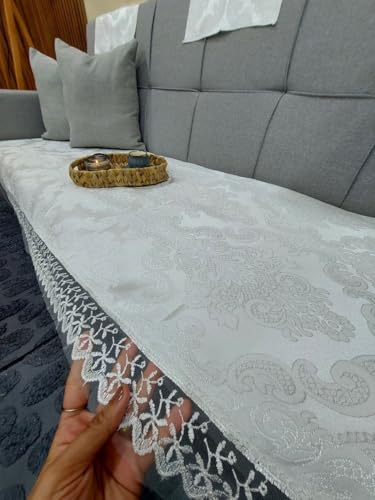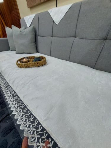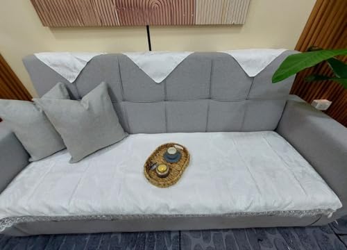 Generic - Generic Linen Sofa Cover Set with Guipure Border, White, 190x75cm, Includes 3 Back Napkins, set of 4, (white) .flo