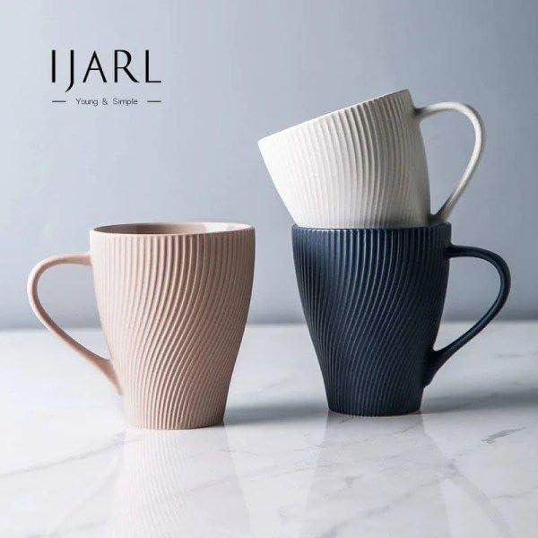 - DESIGN: Elegant textured porcelain mug featuring vertical ribbed pattern and modern beige finish for sophisticated aesthetic appeal