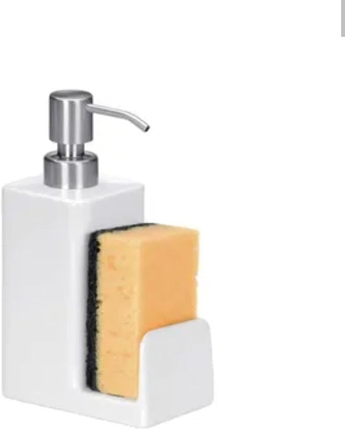 Generic - جيني موزع صابون بورسلين مع حامل اسفنجة، ابيض، مضخة ستانلس ستيل مقاومة للصدا