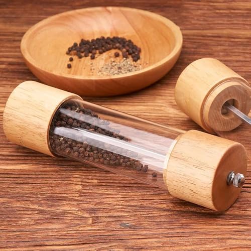 - PREMIUM DESIGN: Elegant wooden pepper mill with transparent acrylic chamber, perfect for both functional use and aesthetic appeal on your dining table