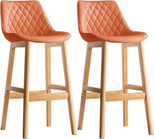 Generic - Generic Quilted Faux Leather Barstools with Wooden Legs, Set of 2 (Orange, 61 CM)