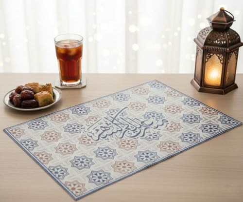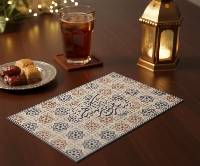 - تصميم أنيق: يتميز بنمط هندسي متطور مع الخط العربي، مما يضيف لمسة أنيقة وثقافية إلى غرفة الطعام أو غرفة المعيشة الخاصة بك