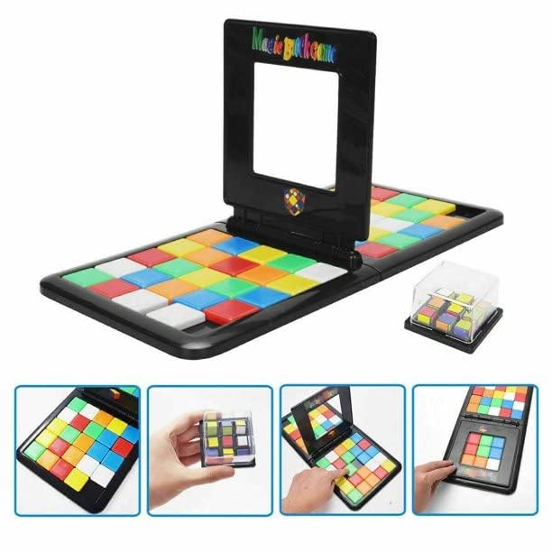 - One player moves the small cube several times and shake until the small blocks sit in place. Each player starts moving the colorful square pieces without lifting them off of their locations on the game board and being able to create the same colors in the Cube first order is the winner