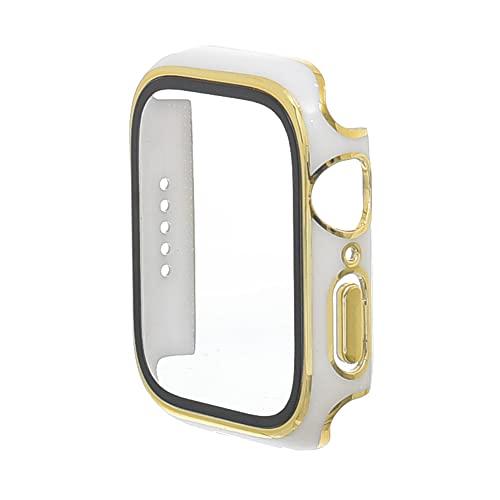 Generic - جراب سيليكون للساعات الذكية بمعدل حماية 360 درجة بحواف سوداء متوافق مع ساعة ابل مقاس 45 ملم - ذهبي وأبيض