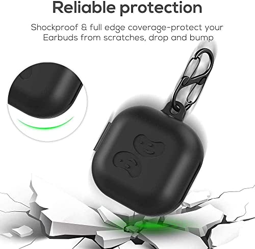 generic - جراب سيليكون لسماعات جالاكسي بادز لايف (2020) ملحق جراب مع سلسة مفاتيح ملساء (أسود)