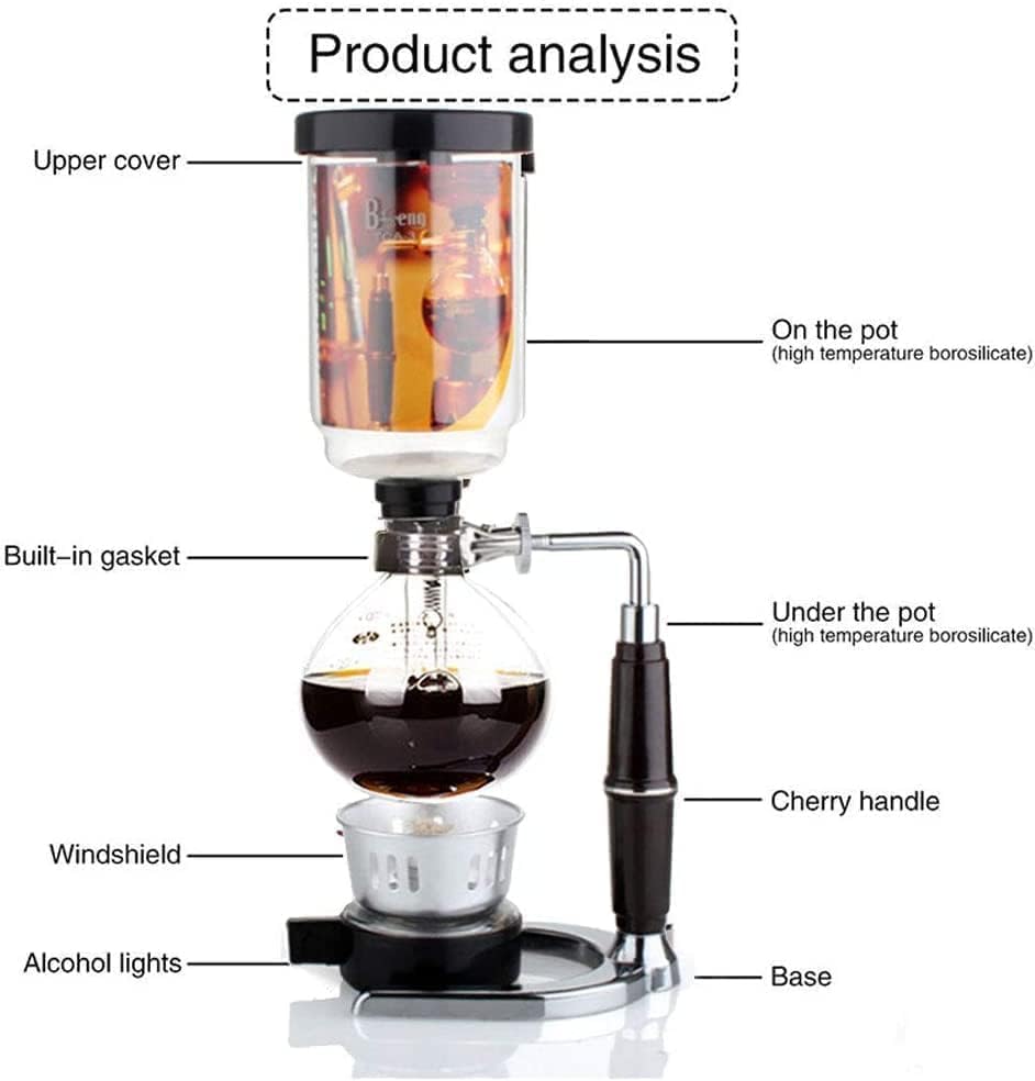 Generic - طقم ماكينة تحضير القهوة بالتفريغ، ماكينة تحضير القهوة المنزلية، وعاء يدوي لصنع القهوة بالتفريغ، شفاف