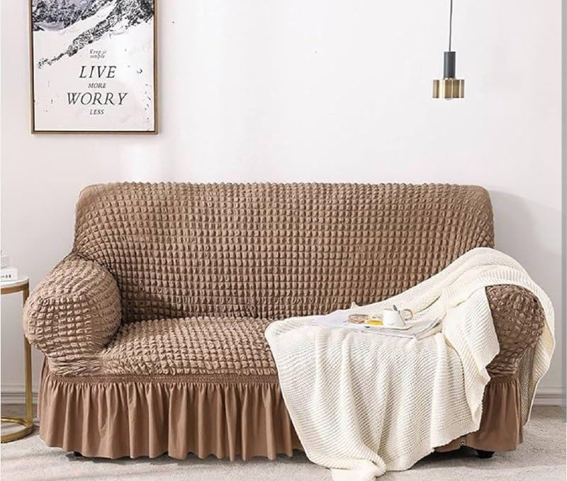 - COMPLETE TRANSFORMATION: This textured stretch slipcover set will completely transform your sofa, making it look brand new again if it's old, and preserving its new appearance with elegant ruffle skirt design
