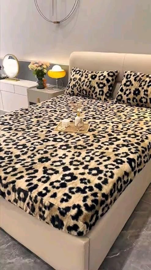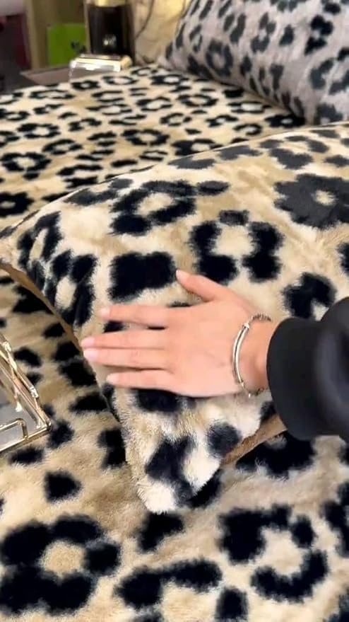 Generic - Generic Soft Faux Fur Bedding Set, Leopard Print, 160cm Bed Size, Includes 2 Pillowcases, (tigeer).flo