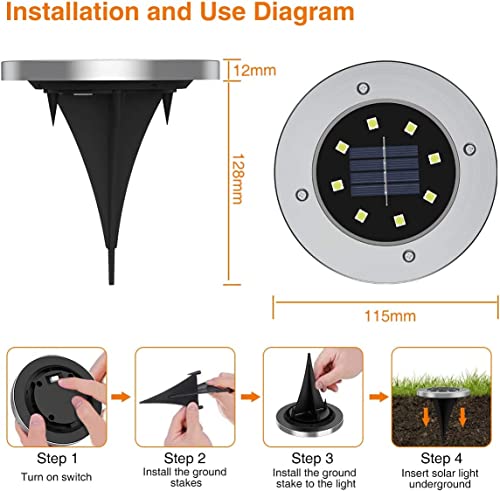 Al Arab for Import & Distribution - Ismail EL Fiky - Solar Outdoor Floor Lights, IP65 Waterproof Solar Garden Lights LED Solar Lights Landscape Lighting Garden Yard Path 8 LED (White) (8)