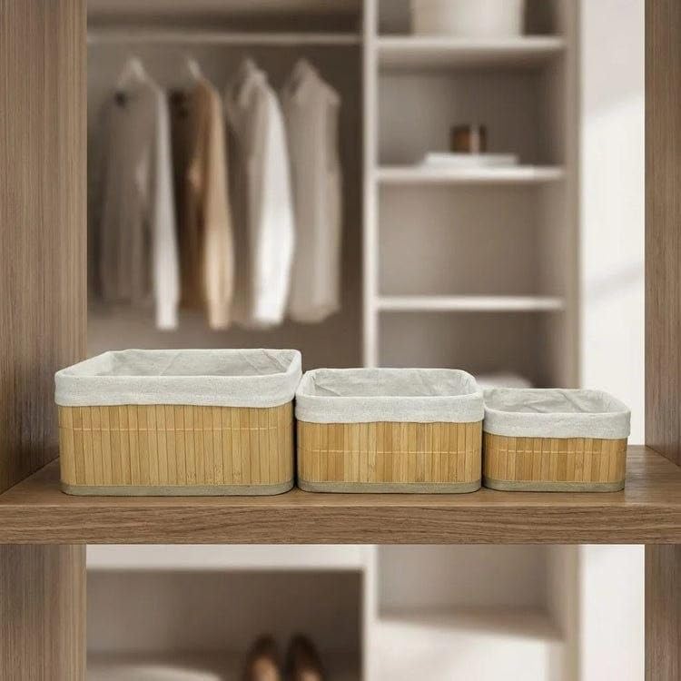 Generic - Generic Square Wicker Basket Set with Linen Lining, 3 Piece Storage Organiser Baskets, Multi-Purpose for Bathroom and Bedroom .suw