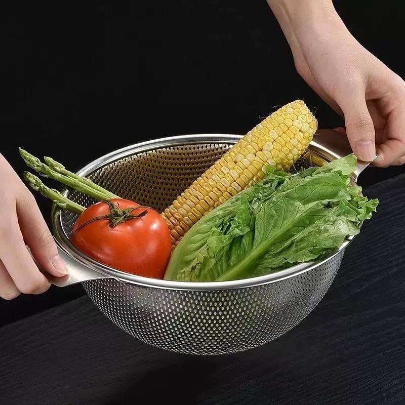 - VERSATILE KITCHEN TOOL: Perfect for draining and rinsing vegetables, fruits, rice, pasta, and other foods with efficient micro-perforated design that allows quick water drainage