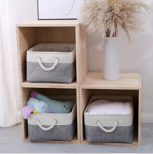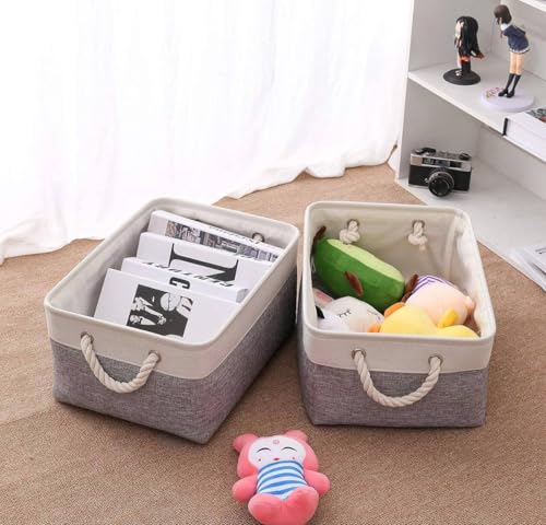 - VERSATILE STORAGE: Multi-purpose storage basket set perfect for organising clothes, toys, magazines, and household items with a stylish grey and white linen design