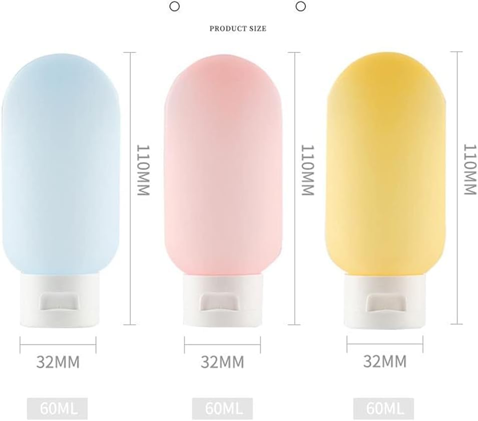 Generic - Generic Travel Bottles Set of 3 60ml Plastic Squeeze Bottles for Cosmetics, Shampoo, Conditioner with Storage Bag (Multicolor)