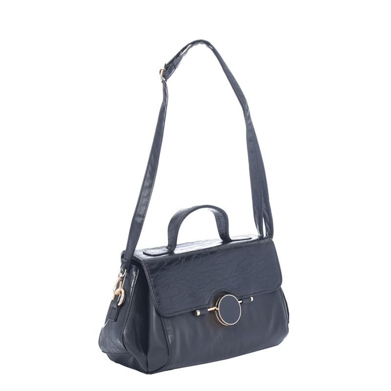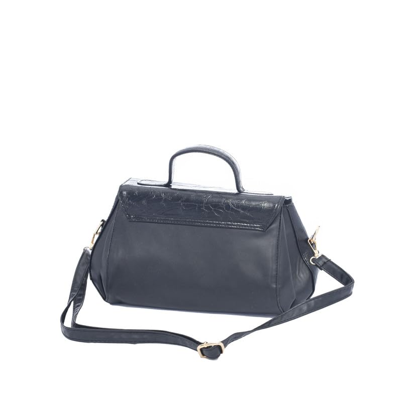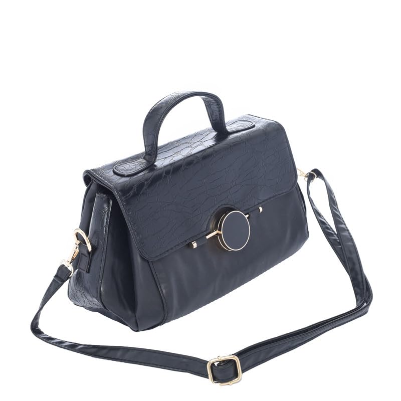 genuine - جينوين شنطة يد انيقة من الجلد للنساء مع زر امامي للحقيبة، لون اسود