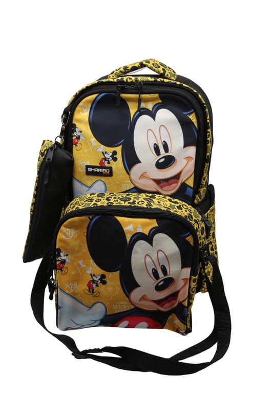 GHARIBO BAGS - Gharibo Bags School Backpack With Lunch Bag Size 17 Model 26 Mikey Mus Black