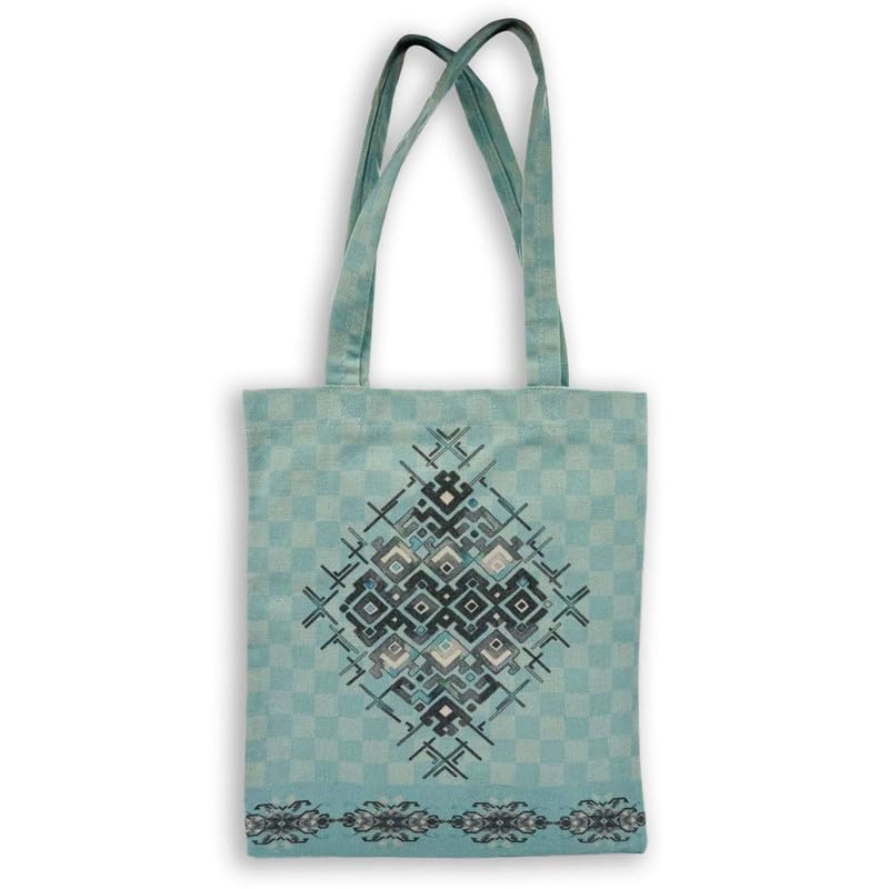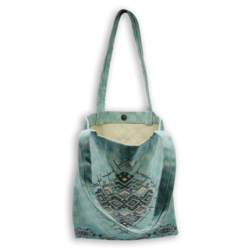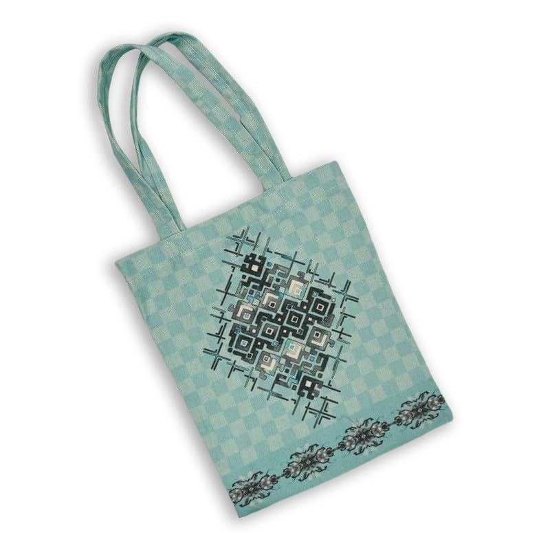 GHARIBO BAGS - شنطة كبيرة توت كاجوال مطبوعة من الكتان للنساء من غاريبو باجز R230119A مقاس 33 × 38 سم، تركواز