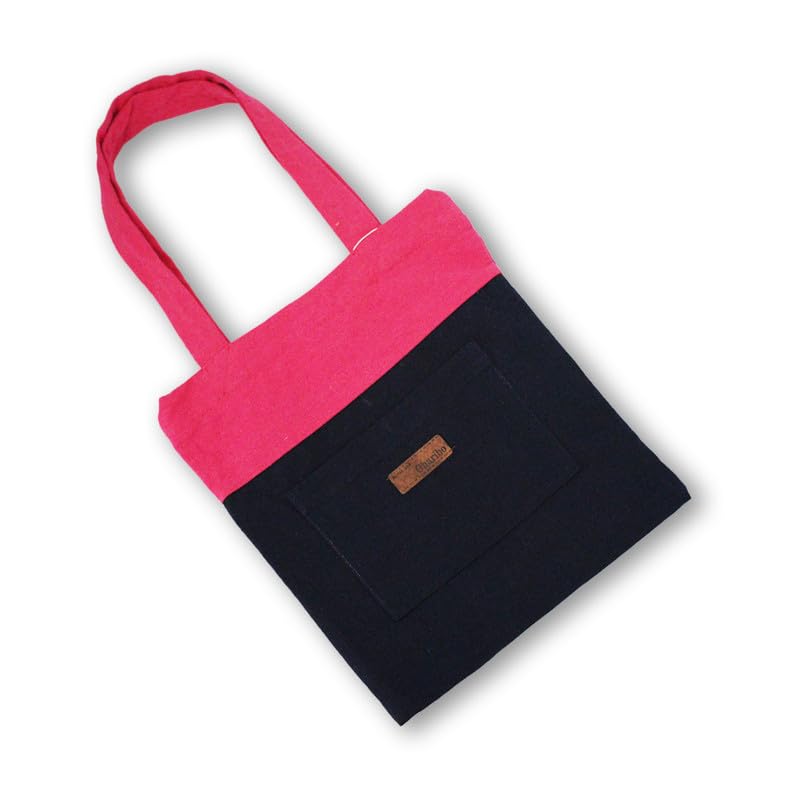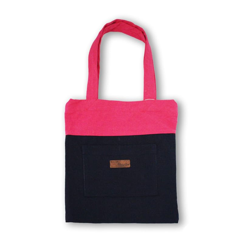 GHARIBO BAGS - شنطة كبيرة توت من الكتان للنساء من غاريبو باجز بالوان سحب وجيب خارجي R230134F مقاس 34 × 40 سم، ازرق
