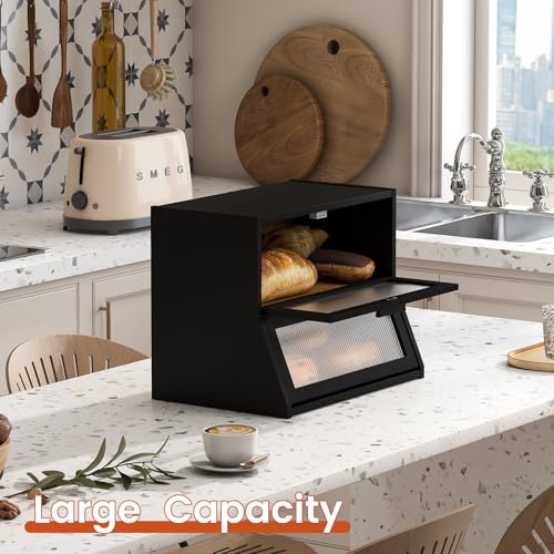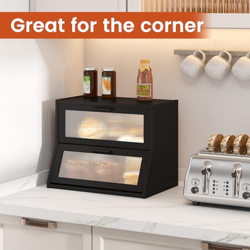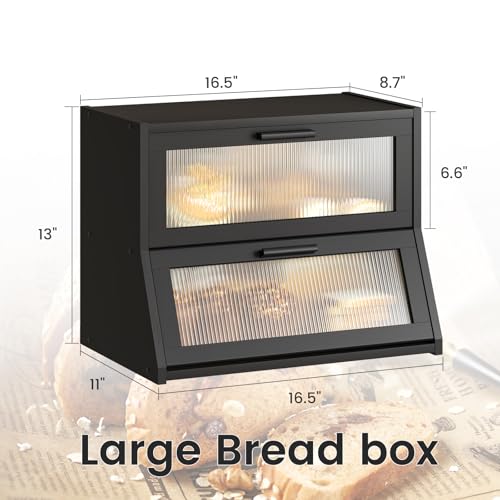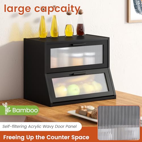 GHWIE - جي اتش دبليو آي اي صندوق خبز مزدوج الطبقات، سعة كبيرة، منظم سطح الطاولة من الخيزران