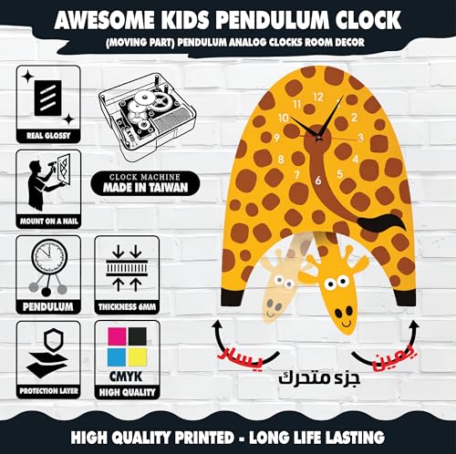 Generic - Giraffe Pendulum Movable Wall Clock with Moving Head, Bright Colors and High Quality, Quiet Silent Movement, Easy to Hang, Adds Attractive Decorative Touch to All Taste