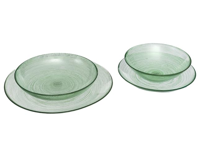 Generic - طقم ادوات مائدة زجاجية، اخضر، تصميم نمط حلزوني، 26 قطعة، اطباق واوعية