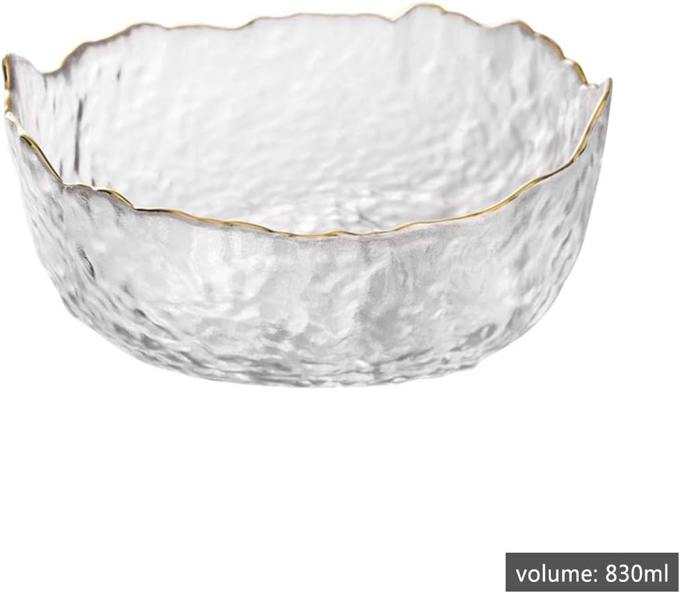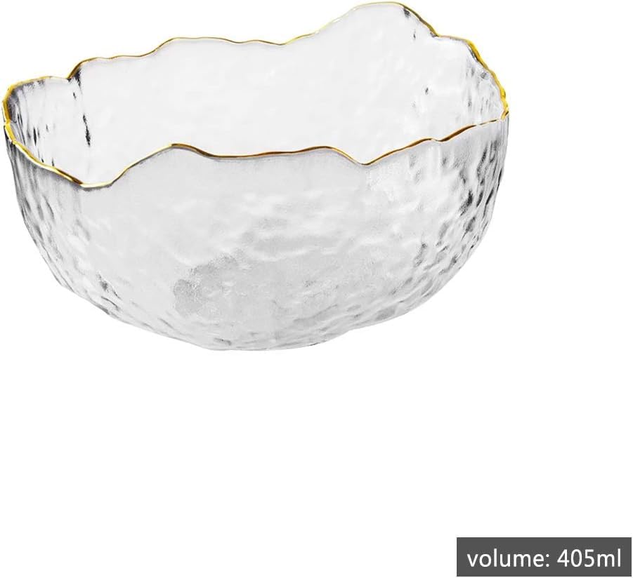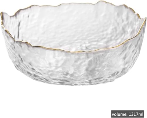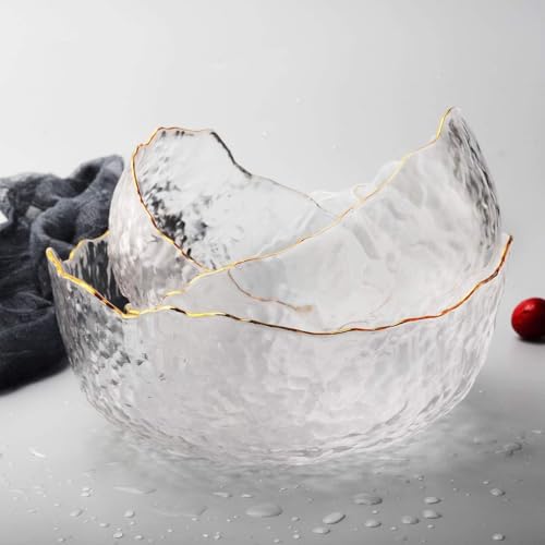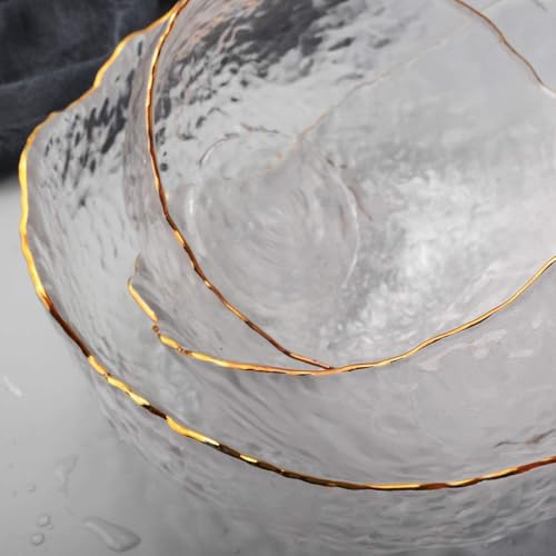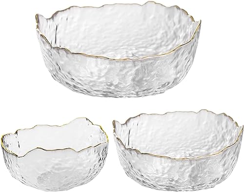 Generic - وعاء زجاجي للفاكهة والسلطة مع حافة ذهبية، شكل غير منتظم، شفاف، 3 قطع، للحساء والحلوى والمعكرونة والكاري والفشار والحبوب