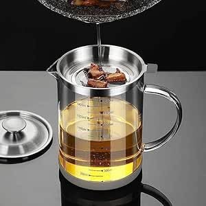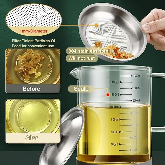 Generic - Glass Oil Storage Container with Strainer, 1.6 L Capacity, Kitchen Grease Filter with Lid