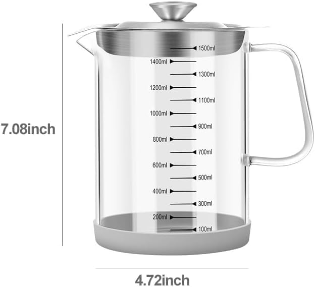 - CAPACITY: Large 1.6-litre glass container perfect for storing cooking oil, bacon grease, and other kitchen fats with convenient measuring marks