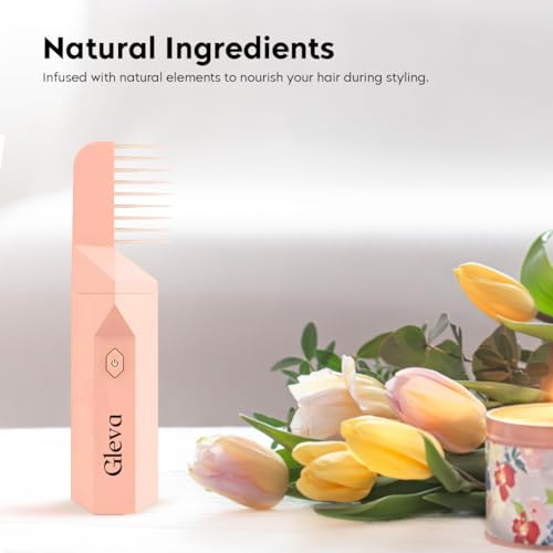 Gleva - مشط إلكتروني قابل لإعادة الشحن بمنفذ USB من جليفا، موزع روائح عطرية، مشط شعر إلكتروني صغير محمول مع حامل (لون وردي)