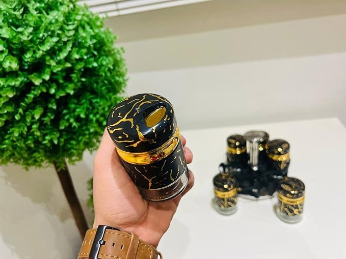 Gluck - Gluck Porcelain Revolving Spice Set 6-Pieces, Black/Gold