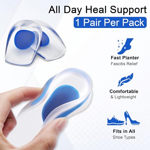 GLUN - وسادات جل سيليكون للعناية بالقدم من جلون®، طقم من قطعتين، وسادات داعمة للكعب، لعلاج التهاب اللفافة الأخمصية، وسادات طبية للأحذية، وسادات جل تقويمية من السيليكا