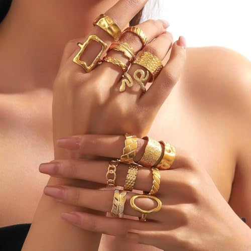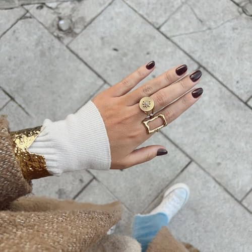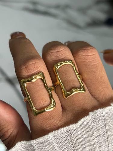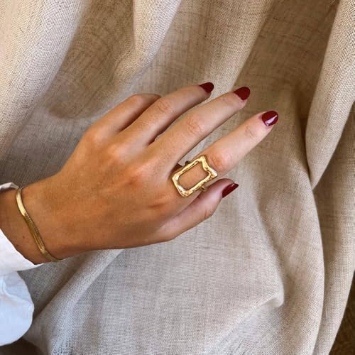 Generic - خاتم مفتوح بلون ذهبي للنساء - مجوهرات عصرية هندسية عصرية قابلة للتعديل
