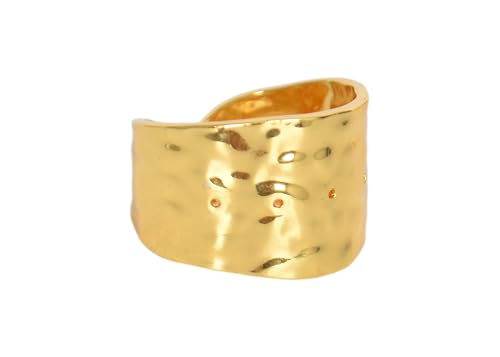 Generic - خاتم ذهبي عريض بتصميم مطروق، قابل للتعديل، نمط عصري بملمس محكم