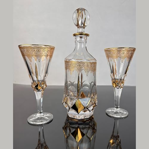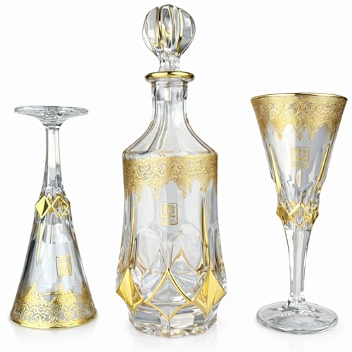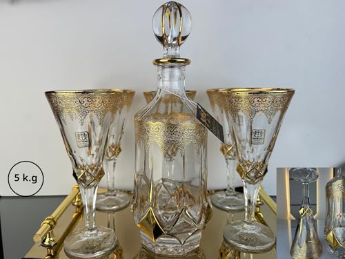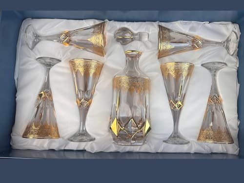 Generic - Gold Plated Bohemian Crystal Tassel Set - Flask with Lid and 6 Glasses