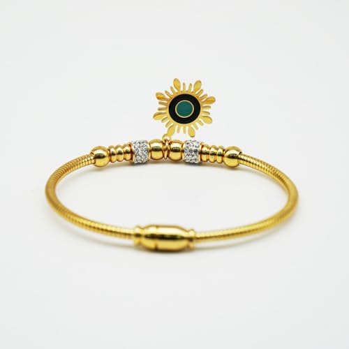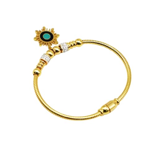 Generic - Gold-Toned Bracelet with Sunflower Charm, Crystals
