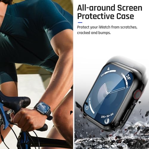 - 【Upgraded Waterproof Design】- The apple watch screen protector 45mm use waterproof treatment, effectively prevent daily water, moisture from entering and fog up, not affect your iWatch touch sensitivity. apple watch case 45mm fits for most kinds of indoor and outdoor sports. NOTE: Not suitable for deep waterproofing such as surfing and swimming.