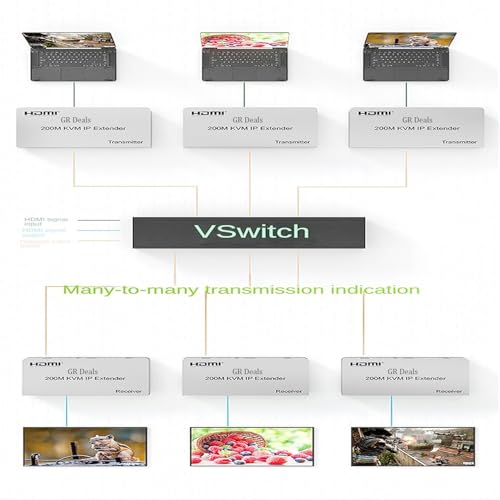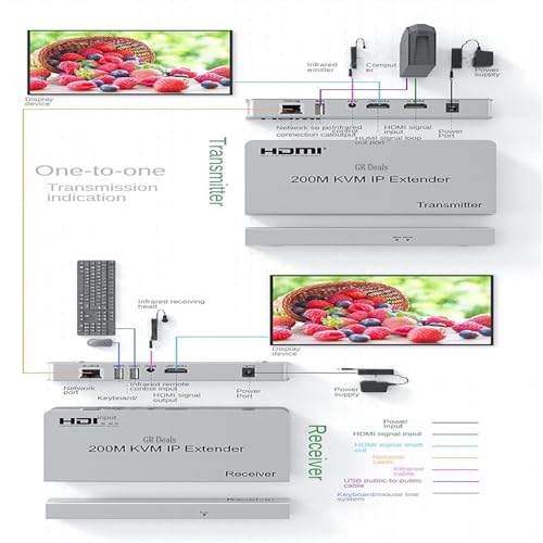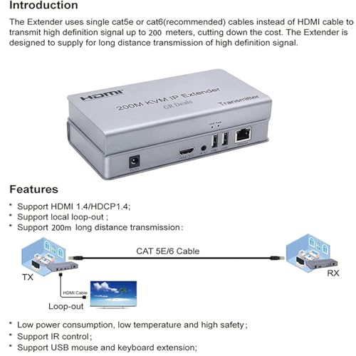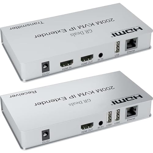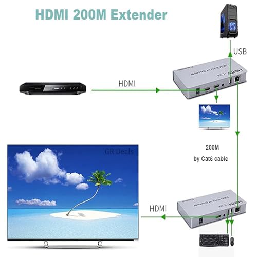 GR Deals - موسع HDMI لمسافة 200 م عبر كابل RJ45 يدعم تقنية KVM عبر شبكة ايثرنت محلية/IP، تحكم عبر الأشعة تحت الحمراء، دقة عرض 1080P@60Hz لشاشات HD عالية الدقة والكمبيوتر، نطاق أشعة تحت حمراء واسع من جي ار ديلز