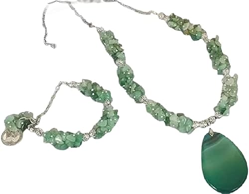 Generic - Green Natural Stone Breaking Necklace Bracelet Set for Women