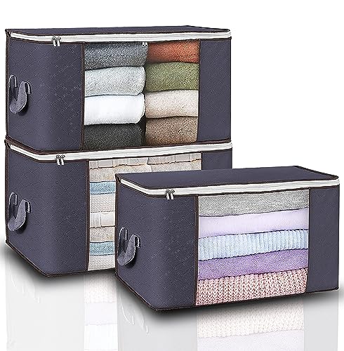 - Large Capacity: 3 Pack Storage Bag Organiser measures 60 x 35 x 43 cm with a capacity of 90L. It is spacious for your comforters, blankets, pillows, plush toys, jackets or other clothes. The storage bags set can be used for closet or under bed. It is suitable for dormitory, attic, basement and bedroom use, also great for college dorm and more.