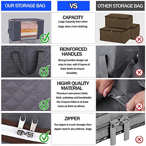 GVTECH - GVTECH Clothes Storage Bag Organizer, [3 Pack] Large Capacity Reinforced Handle Thick Fabric for Comforters, Blankets, Bedding, Duvet, Foldable & Sturdy Zipper, Clear Window, Under Bed Storage (Grey)