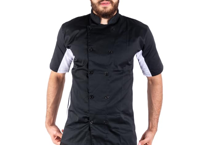 Generic - جاكت شيف بنصف كم - اسود جبردين قطن مزود بلون ابيض ازرار سوداء