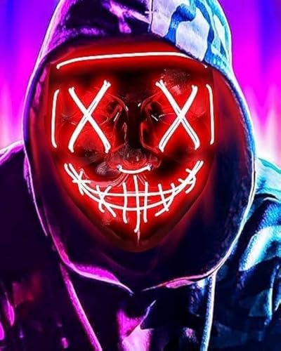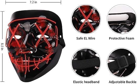 Generic - Halloween Mask, LED Light up Mask LED Mask Scary mask for Festival Cosplay Halloween Costume Masquerade Parties (red)