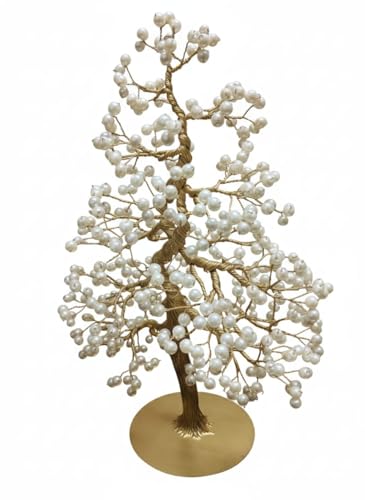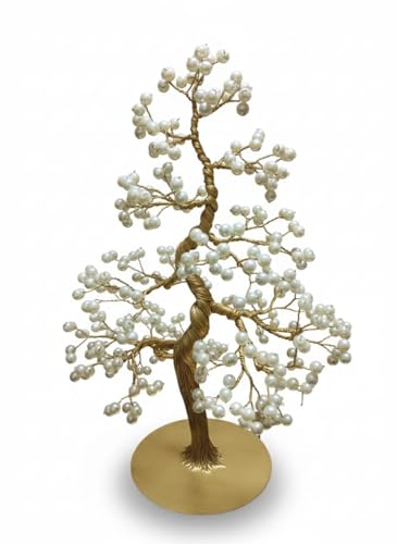 Generic - Handmade Bonsai Tree with Pearl Beads, Gold Wire, Gold Base, Luxury Decorative Masterpiece for Home and Office