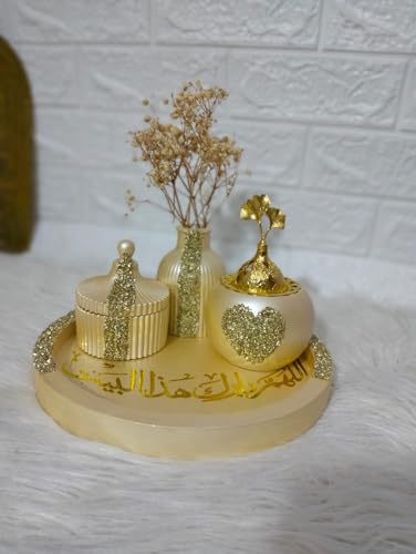Generic - Handmade Concrete Gypsum Concrete Home Decor Set with Gold Accents Includes "God Bless This House"