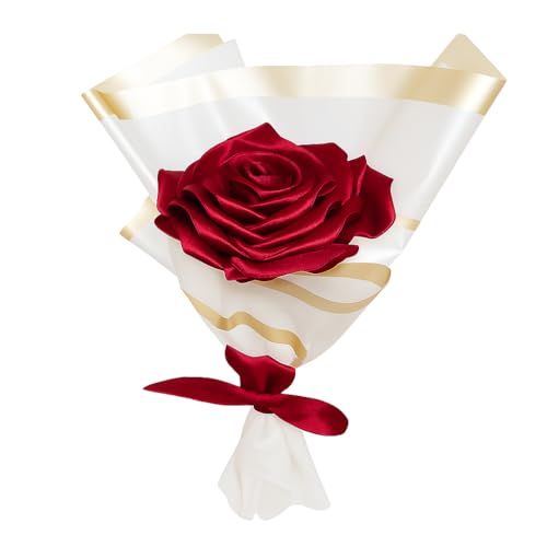 Generic - Handmade Satin Rose Bouquet, Single Red Rose, Elegant Everlasting Gift (Red)
