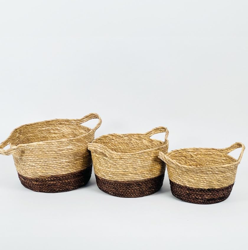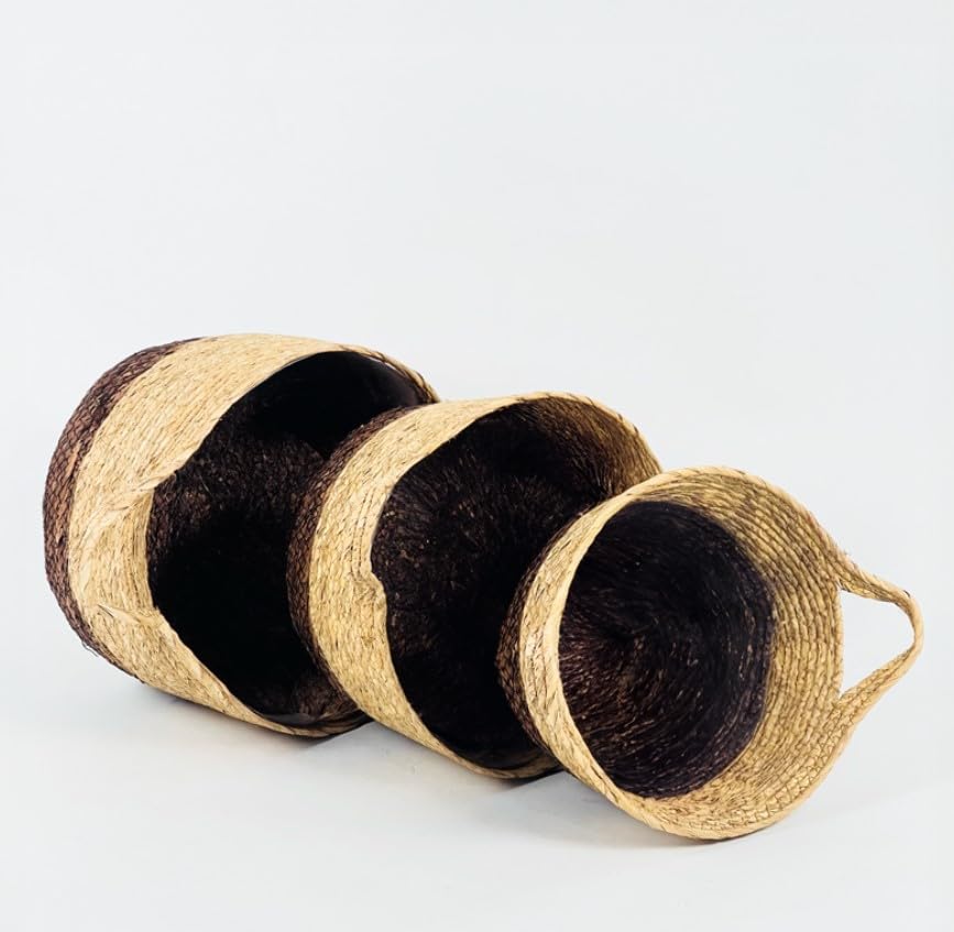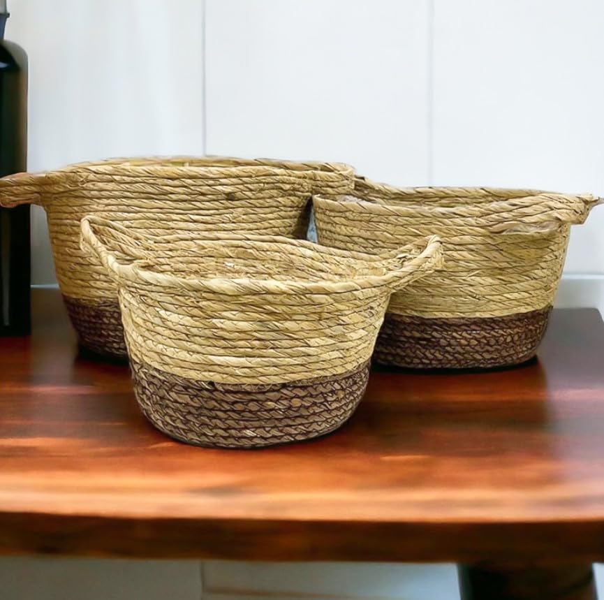 Generic - Handwoven Seagrass Storage Baskets with Handles, Two-Tone Natural and Brown, Set of 3, Nesting Design