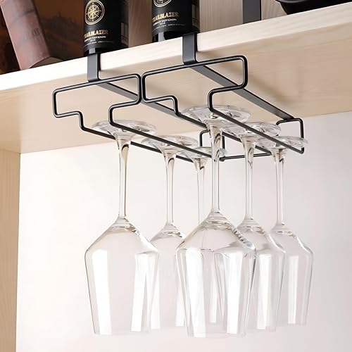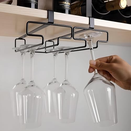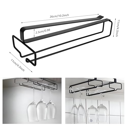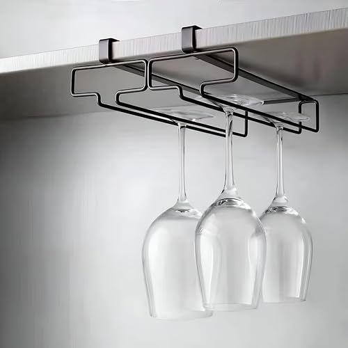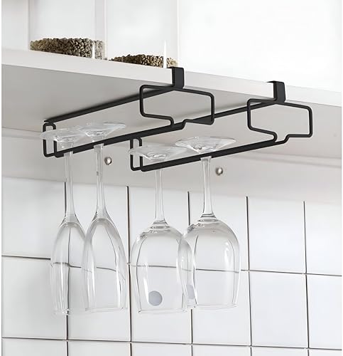 Generic - Hanging Rack - Stylish metal rack for storing drink cups beneath kitchen cabinets, offering a space-efficient solution for your kitchen essentials (Black). (2 pcs)