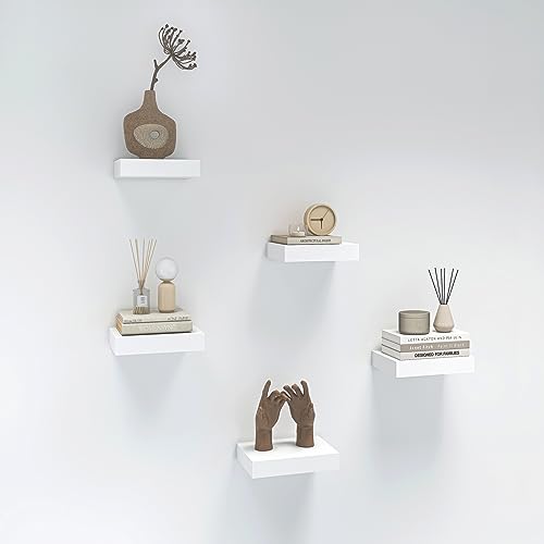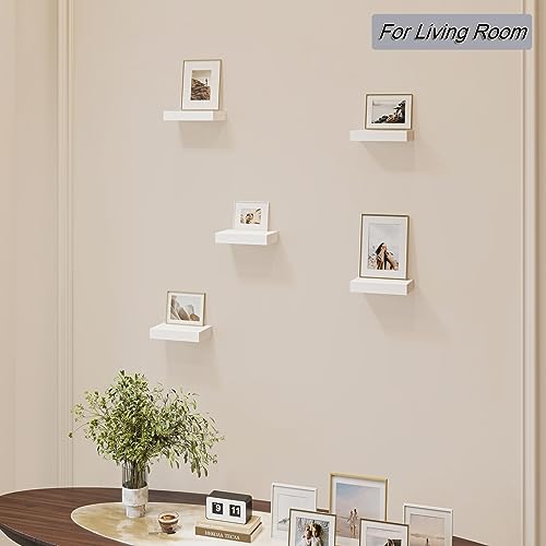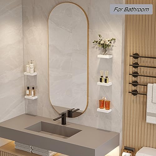HAO ALWAYS DO BETTER - HAO Small Floating Shelf 6 inch Wall Mounted Mini Hanging Display Shelves for Living Room Bedroom Bathroom Set of 5 White